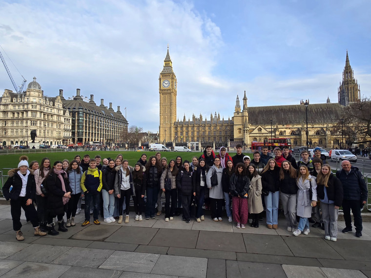 Poleg angleščine si dijaki sami izberejo drugi tuji jezik – na voljo so francoščina, nemščina, ruščina in španščina. Pri pouku francoščine, španščine in nemščine je eno uro tedensko prisoten tudi tuji učitelj, kar dodatno spodbuja razvoj sporazumevalnih zmožnosti.